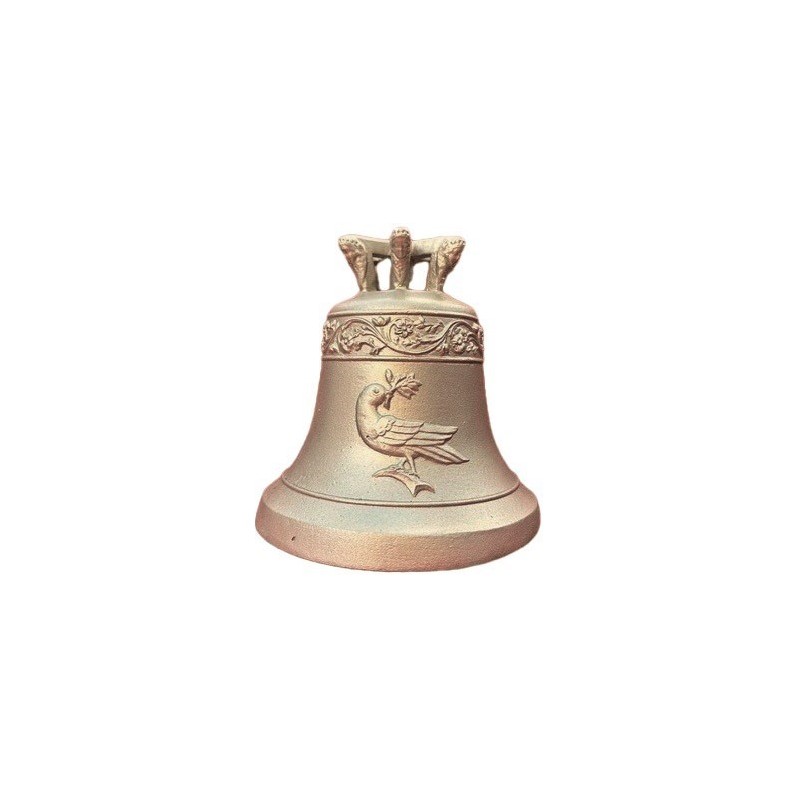 Die Glocke ziert vorne eine Friedenstaube und oben ein Blumenranken-Ornament.