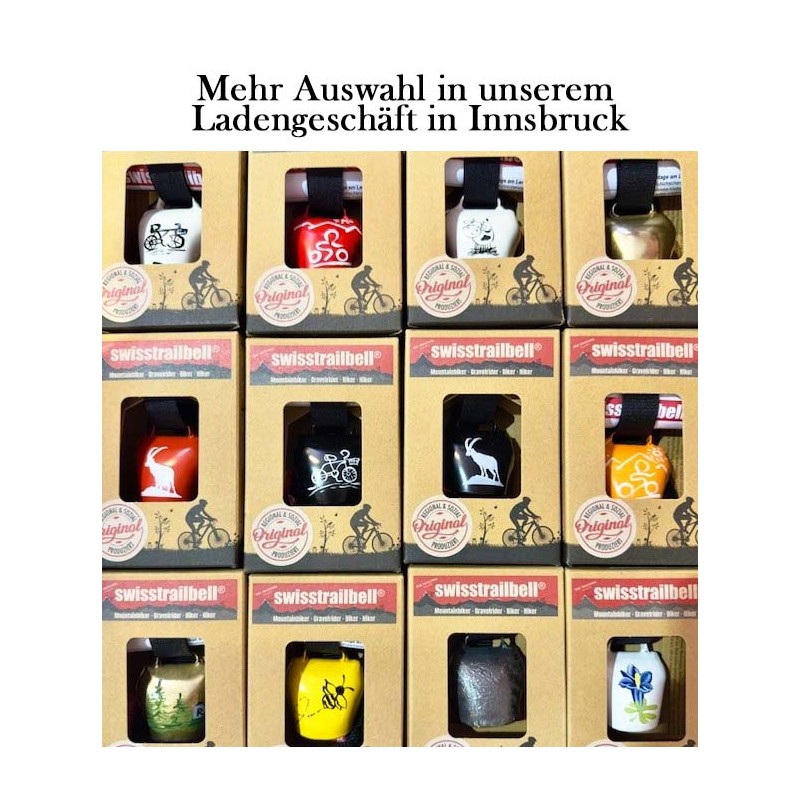 Wenn du die Trailbell hier in unserem Onlineshop bestellst, erwirbst du die goldene Variante wie abgebildet. In unserem Ladengeschäft in Innsbruck findest du jedoch eine große Auswahl an verschiedenen Designs. Gerne senden wir dir ein aktuelles Foto der derzeit verfügbaren Motive – schreib uns dafür einfach eine kurze E-Mail an info@grassmayr.at.